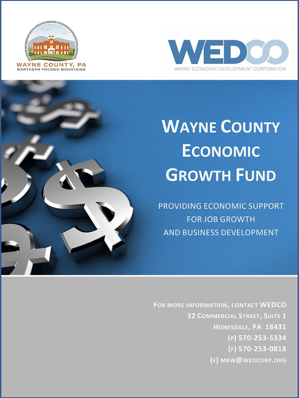 The Wayne County Commissioners, in partnership with Wayne Economic Development Corporation (WEDCO), are excited to present this funding option for business development; The Wayne County Economic Growth Fund. This fund provides grants for undertaking activities that encourage and support economic growth and job creation. Through this program, businesses may be awarded a grant up to $5.000 for eligible projects or up to $10,000 for the purpose of paying eligible loan fees. The grants have private investment match and job creation requirements. Eligible applicants for this funding program are registered, for-profit businesses enterprises that are located in Wayne County, PA. The business may be a start-up or an existing business. Ineligible applicants would include not-for-profit businesses, lenders, businesses engaged in any illegal activity, government-owned entities, a business that has an outstanding local or county tax bill, businesses primarily engaged in lobbying or political activities, consumer and marketing cooperatives, and speculative businesses. The Wayne County Economic Growth Fund is an important investment in the County’s sustainable future. This fund will help create new jobs, attract new and growing businesses to Wayne County, and build a strong, lasting relationship between county government and business professionals. For more information about the Wayne County Economic Growth Fund, please contact WEDCO executive director Mary Beth Wood at This email address is being protected from spambots. You need JavaScript enabled to view it..